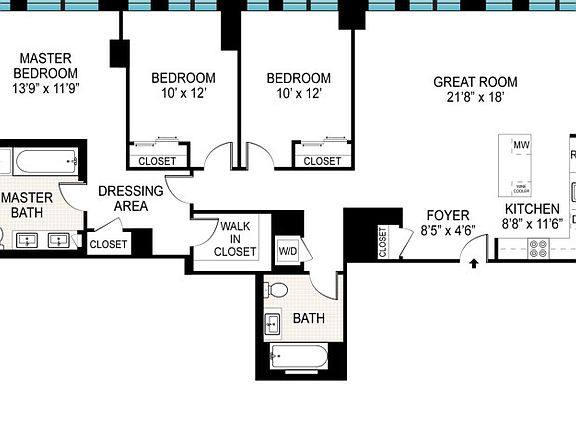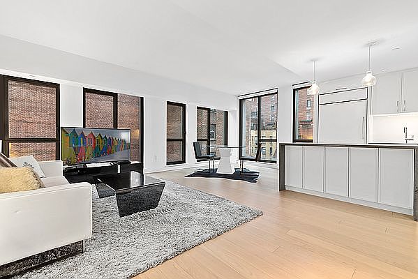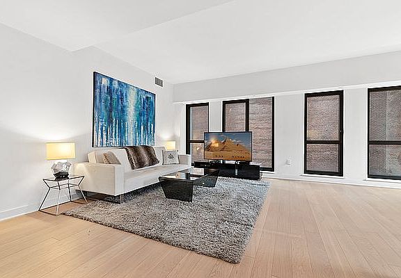 Spacious three-bedroom condominium with over 20 floor-to-ceiling windows. This residence occupies the entire southern portion of the building and has triple exposures. The expansive corner great room has windows facing south and west. The corner master bedroom has windows facing south and east. The second and third bedrooms face south. Master suite features a dressing area and walk-in closet. The spa-like Porcelanosa master bathroom has heated floors, double vanity, deep soaking tub, stall shower, and a floor-to-ceiling window. The custom kitchen features stone counters, wide Sub-Zero refrigerator, Miele oven and dishwasher, and a built-in wine fridge. The apartment has wide plank white oak floors, central heat and air, and a Bosch washer and dryer. Located in the heart of Gramercy, this full-service luxury building features a concierge, fitness room, playroom, bike room, cold storage, and a rooftop lounge with outdoor kitchen and great city views.