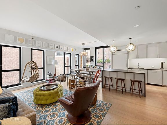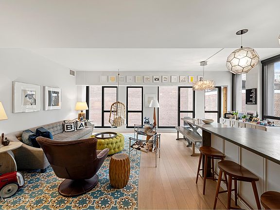 Graced with sublime finishes and an abundance of natural light, this 3-bedroom, 2-bathroom condo is a portrait of contemporary Gramercy Park luxury. Features of this 1,540 sq. ft. home include elegant wide plank white oak floors, central A/C, an Energy Star-rated Bosch washer/dryer, high ceilings, and oversized floor-to-ceiling windows with southern, eastern, and western exposure. A functional entryway adorned with a coat closet flows into an expansive open-concept living room, dining room, and kitchen saturated with southern and western light. The kitchen is equipped with an eat-in waterfall island, chic stone countertops, and a suite of high-end fully-integrated appliances from Miele and Sub-Zero. The master bedroom boasts a massive walk-in closet, an additional reach-in closet, and a custom Vitsoe built ins for additional storage. Upon entry into the master bedroom, you will find a spa like windowed bathroom with double sinks, a walk-in rain shower, and a deep soaking tub, and heated floors. The second and third bedrooms each have private reach-in closets and easy access to a pristine full bathroom with beautifully tiled walls and floors and chic fixtures. The third bedroom is well positioned to be used as a quiet home office with ample privacy. 160 East 22nd is a luxury condominium located around the corner from Gramercy Park. The building has a full-time doorman and concierge, a children's playroom, a state-of-the-art fitness center, cold storage, and a landscaped rooftop deck with an outdoor kitchen and panoramic city views. It is close to numerous restaurants, bars, cafes, and shops, and is close to Union Square and Madison Square Parks. Nearby subway lines include the 6/N/R/W. Pets are welcome.