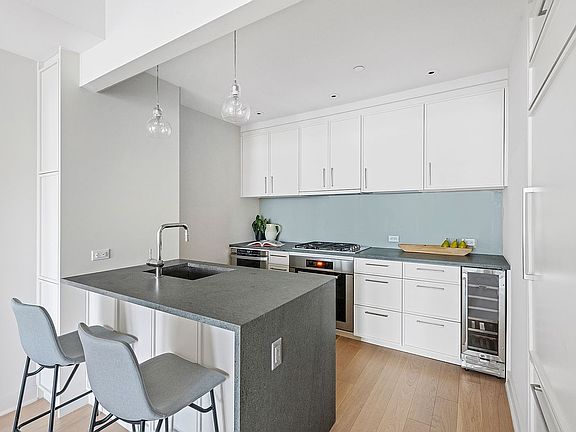 Every detail has been thought through in this luxurious 1-bedroom condo. At 833 square feet, it is certainly one of the largest 1-bedrooms you will see. The living and dining area is 25 feet long, designed for all your dining and entertaining needs. The floor-to-ceiling windows provide ample light along with great city views. The open chef's kitchen has top-of-the-line Sub-Zero and Miele appliances, including a wine cooler. The bathroom is extra large with white marble. 5'' oak hardwood floors throughout. Enjoy at home laundry with a Bosch washer and dryer.