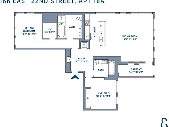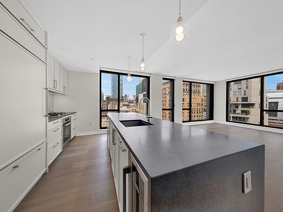 Exquisite Corner 2Bed / 2Bath at 160E22nd Street, Gramercy Discover this exceptional two-bedroom, two-bath condominium in the prestigious Toll Brothers development at 160East22nd Street, located in the heart of Gramercy Park. Perched on the 18th floor, this residence is one of only three in the building with a private balcony, offering rare outdoor access. Interior Highlights: Soaring 10-foot ceilings and expansive floor-to-ceiling windows flood the space with natural light and provide sweeping city views, crafting a serene urban retreat. The open chef's kitchen is outfitted with stone countertops, high-end appliances including SubZero refrigerator, Miele cooktop and oven, Bosch washer and dryer, and a wine coolerall complemented by elegant white oak flooring and ample closet space. Step out onto your spacious private terrace to enjoy morning coffee or evening cocktails while watching the city come alive. Primary Suite & Baths: The oversized primary bedroom offers a notable walk-in closet and a spa-quality en-suite bathroom with double vanities, a soaking tub, and separate glass-enclosed rain shower for a luxurious daily experience . Building & Location Perks: Full-service amenities include 24-hour doorman and resident manager, cold storage, a cutting-edge fitness center, children's playroom, and a beautifully planted rooftop lounge complete with outdoor kitchen, grill, and panoramic views. Situated in a prime location near Union Square and Madison Square Park, you're just steps from top dining, shopping, and public transportation connections. Rent: $12,650 / mo Security: $12,650 Subject to Board Package