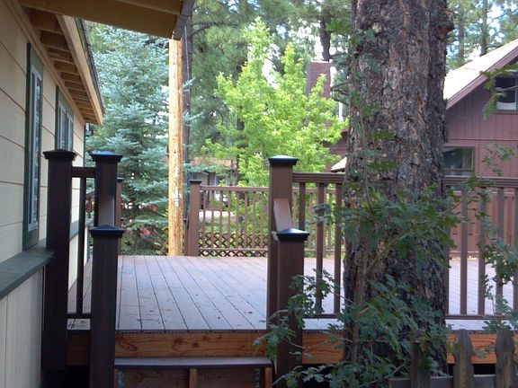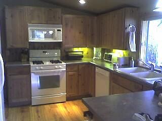 Very nicely furnished cabin with all the bells and whistles. The home offers high end cabinetry EVERYWHERE and in EVERY ROOM, an eat in bar, and separate dining room. A cozy free standing fireplace to add warmth and ambiance to those cool evenings. The master bedroom has great custom closets. The guest bath has a copper sink and upgraded decor. There is wide wood plank flooring and neutral carpeting, along with dual pane windows Outside this home has a green metal roof, and a large storage shed. The cabin has two desk; one in the front and a 1,000 square foot TREX deck on the side of the house. It is simply beautiful.