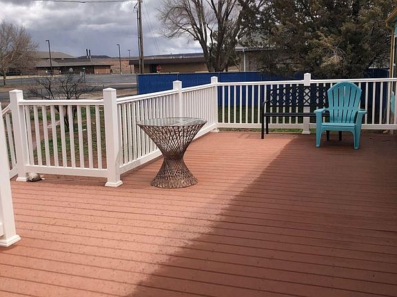 Come see this brightly painted home! Kitchen, living and den have an open living concept. Newly updated kitchen and main bath, with handicap accessibility in mind. New metal roof. New plumbing through-out the home, plus a new evaporative cooler. All appliances in the home are included in the purchase, even the stand-up freezer. Spacious laundry room with built in cabinets and utility sink. The den includes a pellet stove to cozy up to on those chilly evenings. The house sits on a .39 acre lot with a one car garage and carport, Trex decking and completely fenced front and back yards. Buyer to verify all.