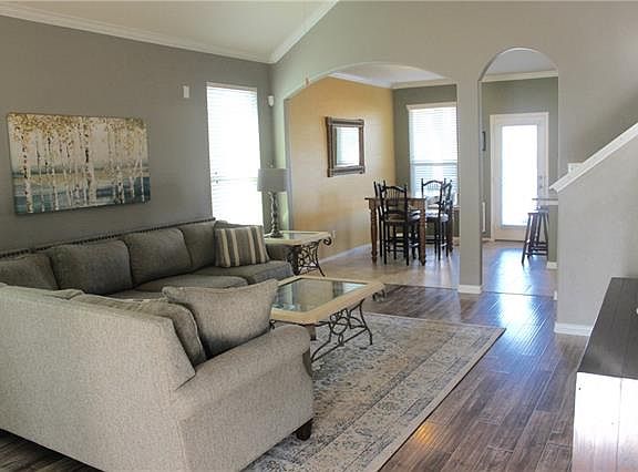 This lovely 3 bedroom, 2.5 bath home has a game room and many upgrades. The inviting open floor plan allows for great flow and plenty of natural light. The kitchen has granite counters, tile backsplash and opens to breakfast area. The master bedroom is located downstairs with a master bath that has separate shower/tub, dual vanities and walk-in closet. The spacious backyard has a covered patio, extended flagstone patio, stone fire pit, pool and shed. Enjoy all the great neighborhood amenities. A must see!