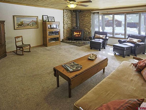 Beautifully remodeled one story home in the tall pines with fishing rights in the Pine River. This spectacular home features 3 bedrooms, 3.5 baths and a 3 car garage. The huge open concept kitchen has room for all the cooks in the family and has an abundance of cabinets and counter space. There is a large breakfast bar that can seat 8. The breakfast nook is adjacent to the kitchen and has a patio door that opens onto a covered deck which is the perfect place for your barbecue grill and for outdoor entertaining. The dining area has plenty of room for a large table and hutch. The family room has a magnificent stone fireplace and is open to the kitchen and dining areas which is great for entertaining. There is a second living area that has a very efficient freestanding wood stove and would make a wonderful gameroom. The sumptuous master suite has a sitting area with a rock fireplace, a sliding door opening onto the deck which is the perfect spot to relax and enjoy your morning coffee, a walk in closet and a private bath with 2 sinks and a large tiled shower. There is a second master bedroom that has a private bath with a tiled tub/shower combination and a pedestal sink. The hall bath has a shower and there is access in that bath to an unfinished basement that would be perfect for a wine cellar or for canning storage. This well cared for home has been remodeled and updated in the last 3 years. The exterior of the home and garage were stained in 2019. The park like fenced back yard is perfect for pets and kids and to just hang your hammock and relax with a good book. There is room for your vehicles and all your toys in the 826 sq ft 3 car garage. An additional outbuilding is located behind the back yard and there is a double gate for easy access to pull a trailer in, for boat storage, etc. Enjoy amazing fishing in the Los Pinos (Pine) River which is accessed through the subdivision. There is no HOA. Vallecito Lake which also has great fishing, water skiing, jet skiing and other boating activities is very close. This would make a wonderful second home/vacation rental or for year round living.