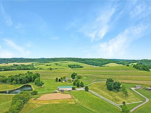 AUCTION LISTING: OPEN HOUSES ONLY. NO PRIVATE SHOWINGS. OPEN HOUSES ON SATURDAYS OCT. 3, 10, 17 & 24 1:00-3:00 PM ~30 mins to PGH Airport & 40 mins to Downtown PGH. Makes an easy commute YET living the country life! 1.82 Acre STOCKED lake w/fountain, gazebo, Dock & beach area.*110x60 Barn w/a studio bunk house w/full bath,kitchen. Tack room w/Full bath & office. Bring your horses! 8 Priefert stalls w/equine mats*Plenty space for more stalls or equipment~ Riding Arena 230x170* 3 Run in sheds* Spring House* 7 Fenced pastures* Home is appr 4600 sq ft. w/a 66x 9 covered porch* HUGE OPEN kitchen w/hickory cabinets, 8x6 island, 9x5 walk in pantry w/DW* Family room w/stone FP, Florida Room w/ walls of windows~First fl 11x8 Laundry, 10x8 mudroom, 26x19 side deck. Gorgeous Master w/walk in closet/master bath, 2 walk in closets