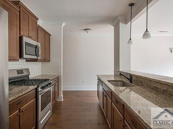 Pecan Bluff Condominiums, built by local, long-time, quality, home builders Scout Construction; offer Oconee county's only walk-able, care free community. This, Thomas plan features a unique kitchen island with a window overlooking the living room, perfect for preparing meals without being left out of the action. A full pantry offers large amounts of storage, so your granite counters stay clutter free. The living room has an exquisite brick fireplace for warm nights curled up with a book or TV show. In the dining room, French doors lead out to the back patio, making moving from the grill to the table a breeze. Upstairs you'll find an owner's suite conveniently located at the back of the house, away from the sounds of passing cars. A walk-in closet will assure that even the most dedicated shopaholic will never run out of space. The master bath features a granite counter, double vanity sink, and a pristine, fully tiled, plate-glass standing shower. With less than a five minute walk to Watkinsville favorites such as, Chops & Hops, Girasoles, and Jittery Joe's your car might start gathering dust. This condo is the perfect for first time home buyers or those looking to downsize. Come take a look! Rhett Burruss to be closing attorney.