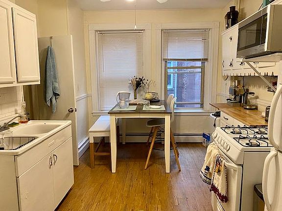 Charming one bedroom with space for home office. Eat in kitchen. Hardwood floors through out! Oversized bedroom with bow front windows, Conveniently located in Boston's North End. Available September 1. Heat included First, security and real estate fee. Heat included in rent. One year lease
