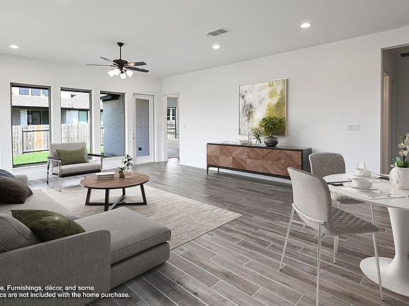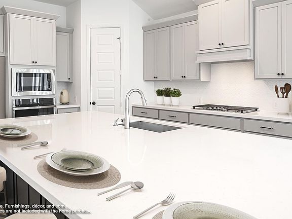 READY FOR MOVE-IN! Home office with French doors set at entry with 12-foot ceiling. Open island kitchen offers generous counter space, 5-burner gas cooktop and corner walk-in pantry. Dining area flows into open family room with wall of windows. Spacious primary suite. Double doors lead to primary bath with dual vanities, corner garden tub, separate glass-enclosed shower and large walk-in closet. Abundant closet space and natural light throughout. Covered backyard patio. Mud room leads to two-car garage.