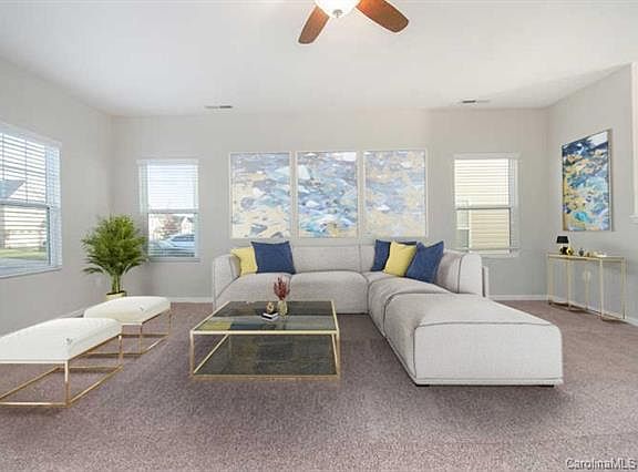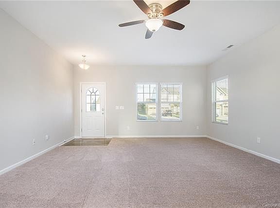 Meticulously maintained 3bed/2.5bath home sitting on a 0.13 acre lot in Sutters Mill. Once inside, you'll find carpet flooring throughout the living area and bedrooms. The kitchen offers dark cabinets, granite counters, and tile backsplash. The primary suite bathroom boasts dual sinks and a tile shower. Additional features include a large concrete patio in the backyard and a 2-car garage. This Troutman home is well cared for and ready for move-in! This home is vacant and cleaned regularly.