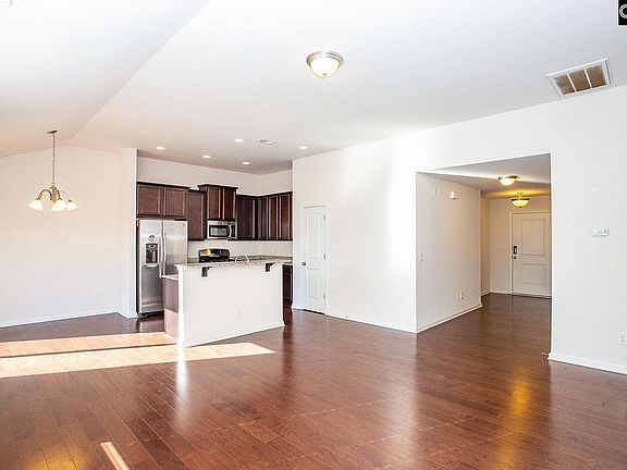 Fantastic One-Story Floor Plan Built by Essex Homes just 3 years old! This open Santee floor plan offers HARDWOOD floors in the entrance, hallways, great room, Kitchen and Eat-In Area. The Kitchen has recessed lighting, beautiful Luna Pearl Granite counter tops and Espresso stained cabinetry. Stainless Steel Appliances include Gas Stove, Dishwasher, Microwave, Disposal and Refrigerator. The Kitchen offers an Island bar area plus an EAT-In area with 5-foot sliding glass door leading to the patio with view of private back yard space. This is a split floor plan with the owner's suite just off of the great room and it offers tons of natural light, walk-in closet, double vanity granite counter tops, separate shower, garden tub. You will also enjoy the large Utility room that includes the washer/dryer. The back yard offers a patio and privacy fence. The home offers a sprinkler system (front & Rear) for easy lawn watering, tankless-Water heater and R-50 Attic insulation, 2 car attached garage and keyless front door entry. Neighborhood Play ground and Covered Picnic Area.