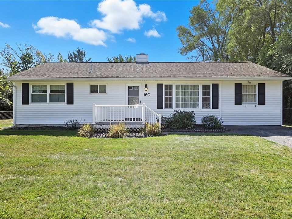 Open House Sunday 9/28, 10:30am-12:00pm. Come see this vinyl-sided, low-maintenance ranch in the Rush-Henrietta School District, set on a generous lot! Offering comfortable one-floor living, this home features 3 bedrooms, 1 full bath, and two separate living areas—perfect for entertaining or creating a cozy retreat. The oak kitchen provides plenty of storage, and carpeting runs throughout the main living spaces for warmth and comfort. Updates give you peace of mind, including vinyl replacement windows, HVAC (2019), roof (approx. 15 years), hot water tank (2022), whole-house generator (2025), glass block windows, sliding glass door, deck, and storage shed. The fully fenced yard is ideal for pets, play, and privacy. A great blend of convenience, comfort, and updates—move right in and start enjoying. Delayed negotiations until 9/29/25 at 2pm.