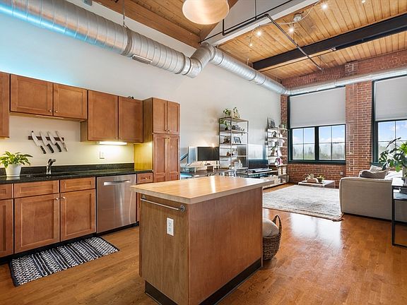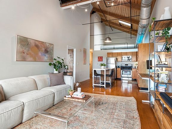 Offer Deadline - Please submit all offers by 12:00 pm on May 7th. Please make offers good until 12:00 on May 8th. Unique industrial features with beautiful hardwood flooring throughout the living/Kitchen, entry and hallway areas. Soaring cathedral ceilings in all rooms with no-one above! Penthouse loft living at its best. Energy efficient with new Heat Pump unit just installed, water heater installed in 2021. Stainless steel appliances and granite countertops complete the kitchen in this open floorplan. 2 full bathrooms, large, custom walk in closet and en suite bathroom in the primary and in-unit washer and dryer. Need extra storage - no problem! Same floor storage comes with your unit at no additional cost. Spacious lobby with well appointed exercise room. Exterior private courtyard. Deeded parking for 1 car and off street parking available.