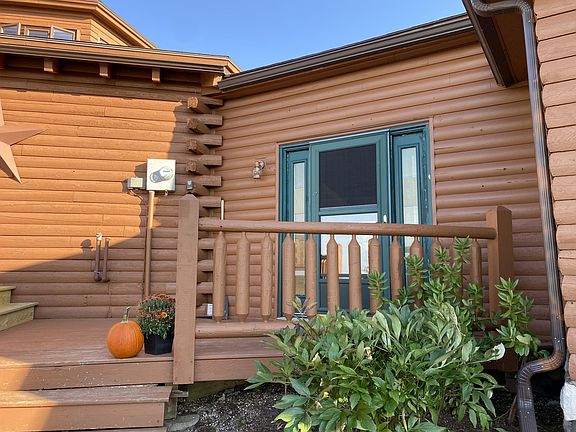WOW! The view from up here is amazing! This beautiful Katahdin log home is very unique with it's 6 sided construction. Built in 1996 with a fully insulated foundation it has seen many updates through the years. Come on in to the garage...the first thing you will notice is the 36X40 space complete with metal cabinets and post form countertop to organize all your tools next you'll enter the home into the mud/laundry room with a utility sink and enough closet space for all your winter gear and than some. Entrance and/or exits to the back yard and front deck and driveway here too. The next room could be used as a laundry room (2nd hooks up here) or use it as a pantry room here you will find access to the basement. You will then enter the main living space with a center kitchen so you will always feel part of the action when entertaining in a complete custom kitchen and Quartz countertops and sit down bar for an informal feel when eating meals or cuddle up to the coal stove on cold winter nights. The main living area is also where you first begin to see the wonderful view towards Fort Fairfield, Limestone, Mars Hill and beyond and watch the sunsets. Here is also where you can access the Primary bedroom w/ ensuite and access to the screened in porch, where morning coffee can be sipped while watching the sun rise and Don't forget daily trips up to the cupola complete with a telescope and wet bar. The cupola is a private space with the 360 degree view of countryside. The main floor also has 2 other bedrooms with closets and a full bathroom for guests and visitors. The basement has an office area and is half finished with a 1/2 bathroom for guests or an extra space for teens to hang out. Lots of storage here too with shelving galore for your seasonal decorations, plenty of space for a freezer or game area for family game night. This is a must see home in a highly sought after small farming community. Schedule your showing today! This will not last long.