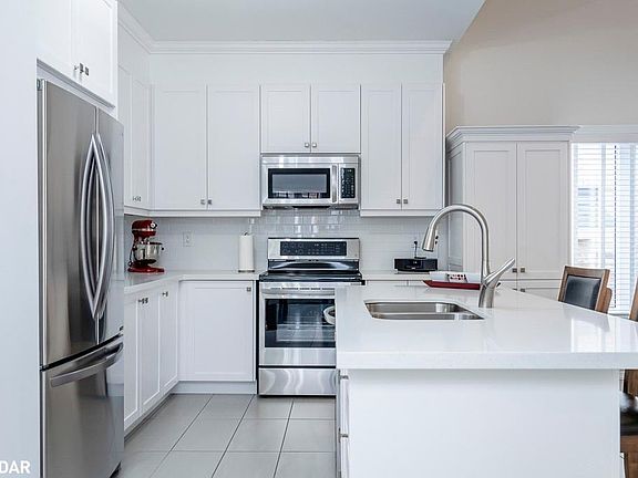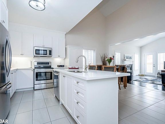 Prepare to be impressed with this gorgeous bungaloft home in great family neighbourhood. Main floor features eat-in kitchen with breakfast bar, laundry room, beautiful hardwood floors, cozy gas fireplace in family room with walkout to deck and fenced yard. Inside entry from double car garage. 2 great sized bedrooms, both with their own ensuites, master with incredible walk-in closet. 2nd level includes 3rd bedroom with walk-in closet and full ensuite and loft space overlooking the lower level. This home is within walking distance to parks and trails. Minutes drive to Base Borden, Alliston and Barrie. A definite must see home.