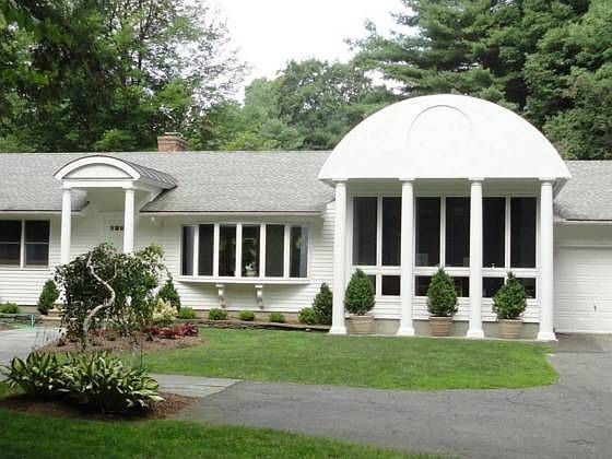 Unique home designed with exquisite taste & quality throughout. Serenely private 5 acre setting. Flexible open floor plan, sculptural lines & lovely layout. Single-level living with spacious rooms & many windows overlooking expansive, landscaped grounds, including large inground pool & tennis court. Beautiful hardwood floors, granite counters, central A/C & fabulous master suite. Finished lower level game room with wet bar & half bath. Completely updated & in new condition. A work of art!