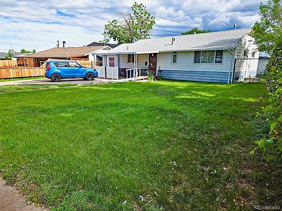 "Location Location Location!! Denver 3-bedroom home under $400k! Sweat equity! NO HOA!! Upon approaching the home, you'll notice a spacious lawn with paved off-street parking. The charming covered sitting area is perfect for relaxing on hot afternoons. As you enter, the kitchen is situated to your left and features solid surface countertops and a pony wall with shelving, creating an open and inviting space. Through the kitchen, you'll find access to a large bonus room that offers the flexibility to be converted into a 4th bedroom, a second bathroom, or both. The living room receives ample natural light from the back windows, which overlook the backyard. The backyard itself is fenced and includes a covered porch and a shed. Conveniently, all the bedrooms are located near the updated bathroom, which boasts a solid surface shower.