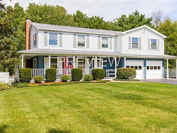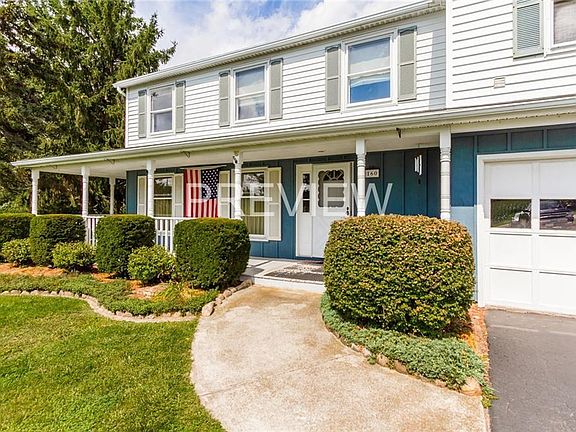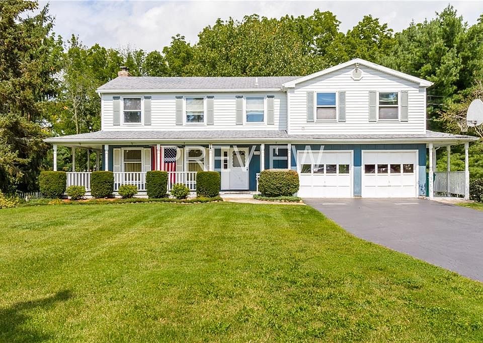 A property that the owners hate to leave. Lovingly maintained Colonial with plenty of privacy. Boasting 4 or 5 large bedrooms. Plenty of cupboard space, ceramic tile eat-in kitchen w/ stainless appliances & granite counters. Formal dining room with built ins and wood burning stove/ brick fireplace. Very cool Dumb-waiter from basement to 1st to bring up firewood next to fireplace. Step-down Family Room w/sliders to deck. Master Bedroom has his/hers walk-in closets & amazing attached office or private sitting room, (or maybe a sweet nursey!) No lugging laundry downstairs, folks! A back-saving 2nd fl laundry (washer/dryer included)! 2 Full baths upstairs. 1/2 bath down. Central air. Rear exterior basement door for easy access & tool storage. Wrap around deck. A must see for Buyers wanting more room & less work.