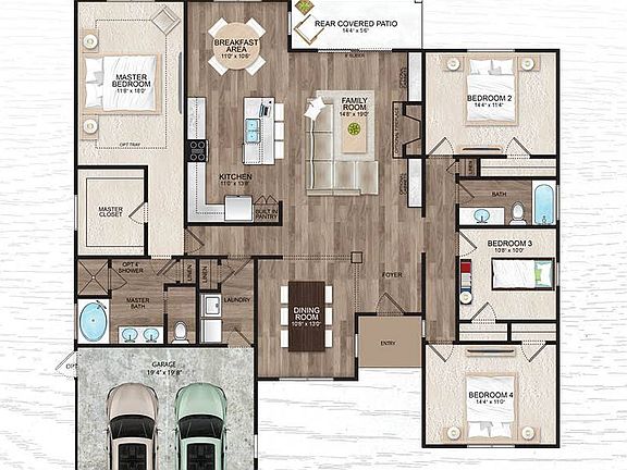 Spacious ranch is a split layout, with three bedrooms on one side and the master suite on the other.. Additional this home features include an open great room with veranda, a spacious kitchen with breakfast area and a formal dining room.