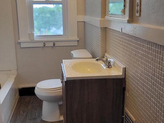 Large upstairs apartment in East Irondequoit. New kitchen! Appliances included. Refinished hardwoods, new kitchen and bathroom flooring. Some new windows. Apartments has 2 bedrooms, good-sized living room, separate dining room, and heated enclosed porch. Off street parking. Laundry hookups in basement. One year lease. Nonsmoking. One cat considered. Water included. Lawn maintenance included. Tenant to pay gas and electric, and do own snow removal. We need confirmation of income and credit in order to set up showings.