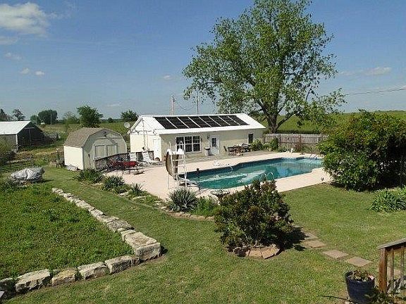 This farmett has 30 level to gently rolling acres with excellent pasture and new 5 barb fencing. 60x60 colored metal hay barn, & ready for cattle or horses. The back yard boasts an orchard with apple, cherry, peach & pear. There is a storm cellar and huge big trees grace the entire lawn area. The house was built new in 2007 and features 3219 sq ft of living space. There are bedrooms (all oversized) on the second level plus a 28x12 room presently used as a library and gym (could be 4th bedroom). A Amazing bath with marble floors. Large master bedroom on main level has huge walk in closet and the master bath is 23' long with marble floors, walk in natural stone shower, step up ultra-Bain European bubble tub with lights and heater, double bowl marble sink. The living room is 23x25 with fireplace, oak staircase, quality light fixtures and oak plank flooring. The kitchen is unbelievable with slate stone floors in kitchen and hardwood in dining and remainder of house. Kitchen bar and an island with granite counter tops, 6 burner stove top, pantry, double convection ovens, stainless steel appliances with touch faucet and pot faucet. French doors lead to a 48' covered deck that overlooks a 24000 gallon in ground pool with lights and heater system also has solar panels to heat pool. Great pool house has bath, kitchen and oak bar with sink and bar stools. Country setting with a country club look.