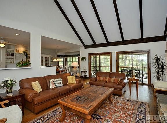 Located at the end of the cul-de-sac for privacy, this home offers mountain views from most rooms. The two story great room with wood beams and stone fireplace opens to the dining area, and large bright open kitchen. The expansive open deck is perfect for small gatherings and entertaining. Natural light floods the light and open living space. Spacious bedrooms with en-suite baths can be found on the main level and the upper level. Conveniently located just minutes to both Cashiers and Sapphire.