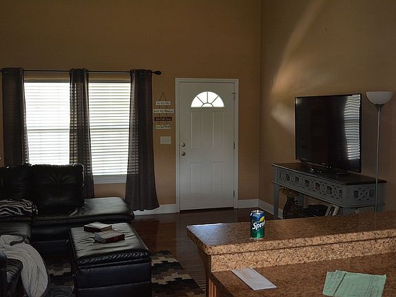 High ceilings. Large level backyard. Large bonus room with closet. Open floor plan. Washer and dryer hook-ups. Ceiling fans in bedrooms, living room and bonus room. Walk-in closet in master. Separate toilet area in master bathroom. Hardwood floors in living room. Tile in kitchen, bathrooms and utility area. Covered back deck and front porch.