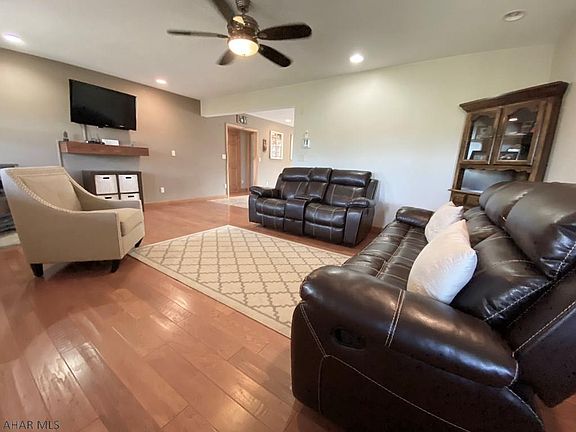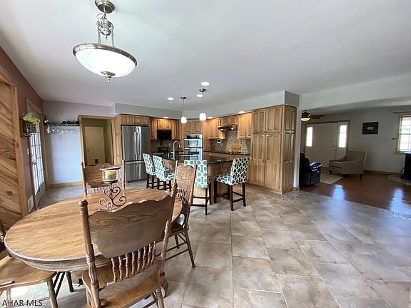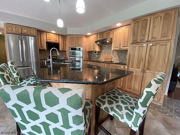 Private yet convenient location, just hours to Pittsburgh, DC & PA TPKE sits this picturesque retreat on 6.83 +/- acres. 2 covered decks allow owners to enjoy nature, wildlife, gorgeous vistas & walking paths that lead to the babbling brook & meadow. Inside, one is immediately drawn to the lovely custom made kitchen w/granite counters, huge center island, hickory cabinets, stainless steel appliances and the amazing ceramic detailed flooring. An owner's suite is located in a private wing with huge walk in closet, custom built bathroom w/ceramic tile and 2 person jacuzzi bath. 2 additional bedroom/office share a large guest bathroom w/ceramic walk in shower. The upper bonus floor is a fabulous guest retreat with 2 bdrms, bathroom and living space. High speed internet is available.