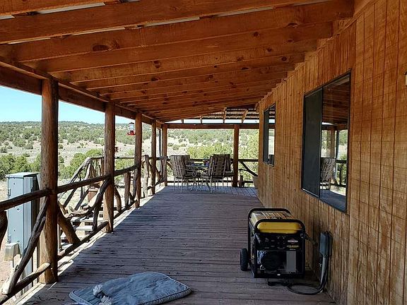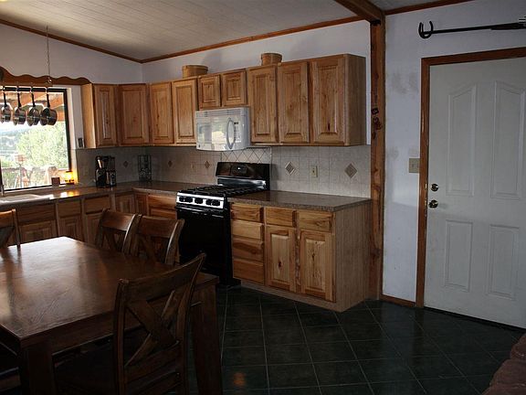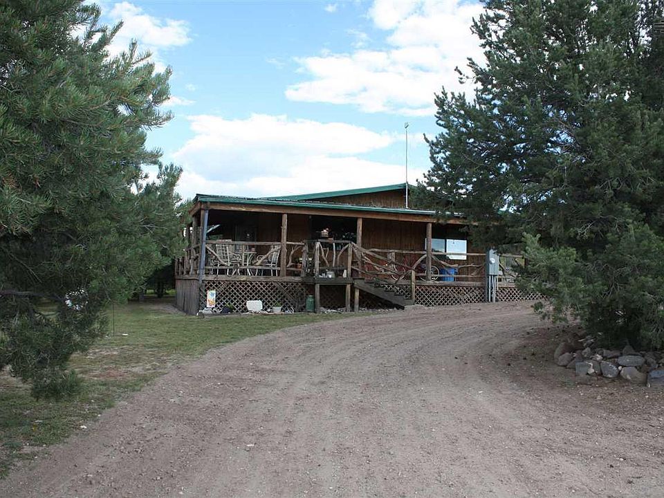 YOU NEED TO SEE THIS PROPERTY! This cute cabin is definitely one of a kind. Property is fully fenced. Most of the dead fall has been cleared and the trees trimmed. Property is very clean and inviting, from the graveled drive to the fenced garden and outside seating area, everything has been well-maintained. Sit on the large porch in the morning to drink your coffee, watch as the elk, deer and antelope stroll by. Inside the home you will find custom tile flooring in the kitchen and great room. The bedrooms have free floating laminate flooring. Kitchen is well organized with a propane range and plenty of cabinets and counter space. Large laundry room. Heating is provided by a forced air furnace and a freestanding wood stove. Bonus feature - air conditioning!! Not necessary but really comes in handy on those hot July and August days! Propanel roof and recently upgraded septic. Large outbuilding has 3 separate areas with a garage, storage and workshop.