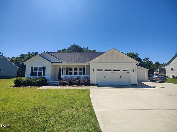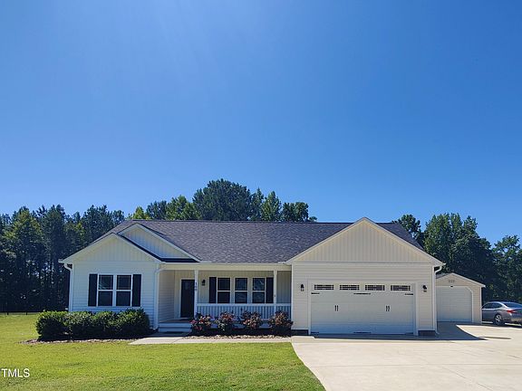 Don't miss this well-kept Three Bedroom, Two Bathroom Ranch Home offering the feel of Country Living, but located only 30 easy miles from Center-City Raleigh. You'll enter this single-story home through a wide Covered Porch big enough for some rocking chairs and a table for your Iced Tea. The open Common Area has Vaulted Ceilings, and includes a large Living Room with an LP Gas fireplace, a Kitchen with a convenient Island and high-quality cabinets, and a Dining Area with a sliding glass door leading to the large south-facing Screened Porch. From there, you'll find access to the uncovered Deck perfect for grilling, and the Fenced Back Yard boasting some beautiful rose bushes. The Split-Bedroom Plan offers a Primary Suite at the back right corner tucked away from the world, with a welcoming Oversized Bathtub in the ensuite Bathroom, and a Walk-In Closet almost big enough to get lost in. The other Bedrooms share a Full Bathroom at the Left side of the Home. You'll find an Attached Garage big enough for Two Cars with an Epoxied Floor, and as a bonus, a detached Shed or Garage big enough for toys, motorcycles, or perhaps another car. There's also a parking pad large enough for an RV stashed out of the way at the far Right. We think you'll agree that this home offers some advantages in floor plan, upgrade, and appointment over most of the new construction homes in the same price range, even at only 4 years old. We're looking forward to your touring, and we think you'll be glad you did.
