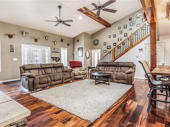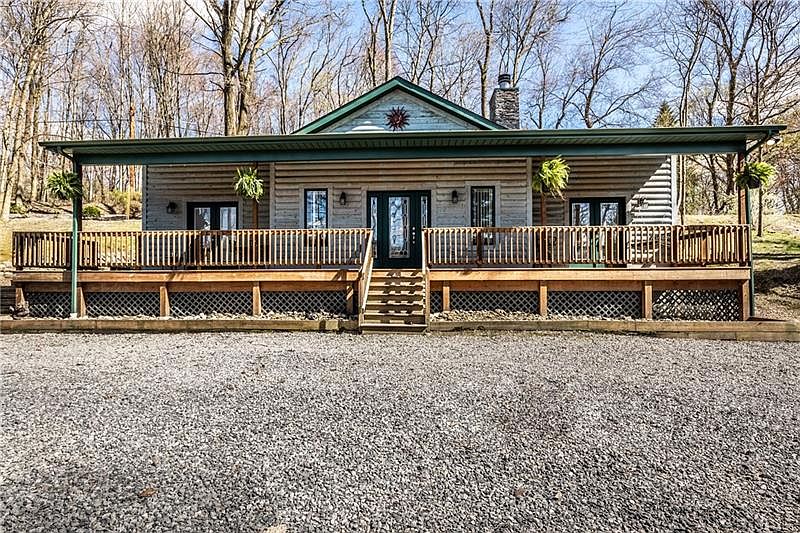 Welcome to 160 Jones Rd! This beautiful custom built home features an open floor plan, with cherry cabinets, quartz countertops, SS appliances, Brazilian cherry hardwood floors, surround sound speakers and much more! There are 3 bedrooms (with the potential of a 4th) and 3 full bathrooms. It's situated on 1.72 acres of wooded privacy. Perfect for peace and quiet. Enjoy sitting out on the large wrap around first floor deck or relax in the hot tub on the second floor deck. The detached garage, measuring 25'x50'x16', is the perfect size for parking RVs, boats, cars, campers.. the options are endless! Whether you're entertaining guests or simply enjoying country living, this house is ready to be called home. (Virtual Tour Available)