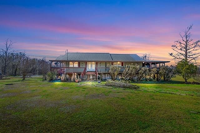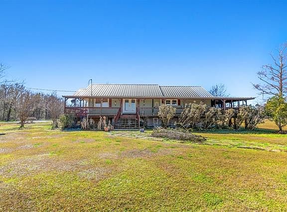 One of a kind charming cottage near Big Lake sitting on approximately 5 acres with a stocked pond. This magnificent 3 bedroom 2 bath home was originally built in 1918 and has so much history and character. The home has been totally refurbished from floor to ceiling in 2005. Inside you will find tin ceilings in the foyer, kitchen and dining rooms and wood floors throughout except in the wet areas. Huge open floor plan with large foyer. Spacious chefs kitchen features a large island with a butcher block top, gas stove with pot filler, trash compactor and stainless steel appliances. Master suite features soaking tub. Both bedrooms are ample size with wood ceilings. Wrap around porches for relaxing and entertaining guests with great views overlooking the pond. This parcel is currently a total of 8 acres but we are only selling 5 acres with house and will provide new survey of the 5 acres. Seller does own an additional 19.25 acres to the West of home if buyer would like to purchase additional property. Flood insurance is only $844 per year and is transferable to new owner. Seller just installed new metal roof, new insulation in attic, new HVAC system and ductwork. This home is move in ready.