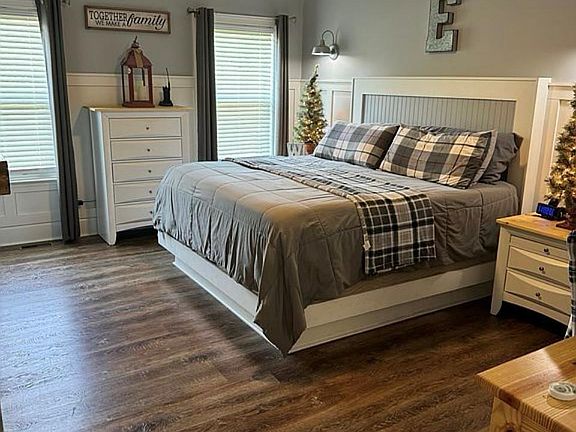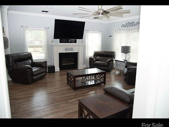 So many extras in this spacious and immaculate ranch home sitting on over a one acre lot in the quaint golf cart community of Oakboro! The open floor plan boast a pretty kit w/SS appliances, island, granite countertops open to a bright dining area with large windows and large but cozy Great Rm w/electric FP and TV with surround sound. The primary suite includes a built in king bed frame, built in desk, large TV and electric fireplace, nice size walk in closet and an en-suite bathroom with double vanities and wall TV included. Two nice size bedrooms share a full bath. Laundry room has lots of storage, a drop zone and washer/dryer hookups. Beautiful landscaping surrounds the house and a double carport. Detached one car vinyl sided garage with a connected screened in sitting area that includes electricity for year round enjoyment. Bring your camper and connect to the 50 amp or 30 amp service. All TV's will remain. Great neighborhood!!!