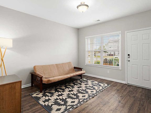 This is it! You can stop looking. Simply gorgeous end unit townhome with all the good stuff!!.....A covered front porch welcomes you to come, sit and watch the world go by. Upon entering this bright and sunny unit you will notice the attractive lvp floors throughout the downstairs. The front room makes for a great office area or dining room. The delightful kitchen is light and airy and open to the dining and living areas. The quartz counters are stunning. There is a ton of cabinet space and a huge pantry. Sliding doors overlook the covered porch and private backyard. Did I mention the yard is the largest in the neighborhood? Oh and the house has some smart features. The lights in the kitchen can be activated by your Alexa or Google Home. Ring doorbell also conveys. Upstairs you will find two nicely sized bedrooms and a spacious master. Quartz counters continue in the baths. Lots a storage and a big laundry room. Upgraded lighting. HOA covers exterior insurance, grass cutting, termite bond and once a year pressure washing. Buyer to pay transfer fee of $200 and capital contribution of $240.