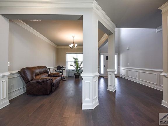 This home features a 2-story fireside family room, secondary bedroom, and full bath, and dining room on the main floor. The spacious kitchen includes an island, granite countertops, and breakfast area that looks out to the covered porch. The master suite is upstairs and features trey ceilings, double vanity, garden tub, separate shower, and a massive walk-in closet. Also laundry room upstairs, 1 bedroom and a full bath on the main.