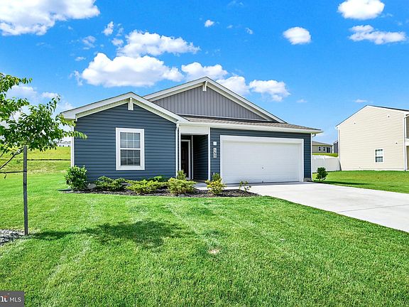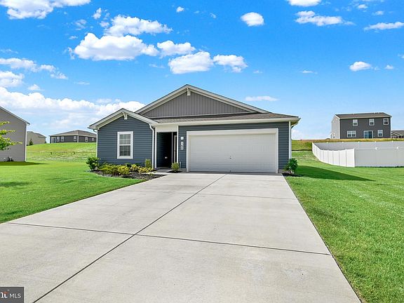 Back on market due to buyer failure to perform. ONE LEVEL LIVING! Welcome to this stunning ranch home built in 2023 featuring 4 bedrooms, 2 bathrooms and a 2-car finished garage with 1,698 square feet of one level convenient living space! As you walk into the spacious foyer you will find two large bedrooms and a full bathroom on the left side. Continuing down the hallway, you’ll find another large bedroom and laundry room set back off the hallway on the right side. Up next, is the beautiful open concept great room. The kitchen is equipped with beautiful granite countertops, gorgeous white cabinets and a large island that overlooks the great room, giving this home a modern look. This space will be great for entertaining! The kitchen also offers a large corner pantry with lots of storage. Off the great room sits the owner’s bedroom with a large bathroom, also equipped with beautiful granite countertops and a large walk-in shower. This owner's suite offers a HUGE walk-in closet. This home offers laminate flooring through the great room and plush carpet in the bedrooms. This rancher sits on a flat lot with all kinds of possibilities for outdoor entertaining, with easy access from sliding glass door in dining room. Located in the South Western school district. This home is conveniently located near Walmart and just a short commute to Baltimore, MD. Make this beautiful home yours today! Buyer to verify square footage.