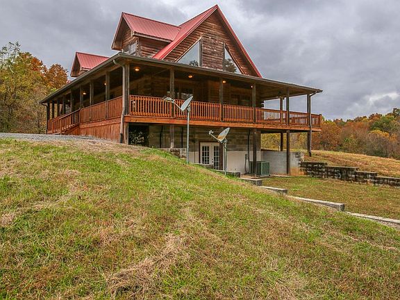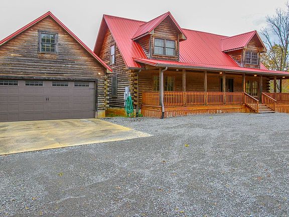 Beautiful custom log cabin w/18 acres & HUGE shop w/full bath. Amazing kitchen w/solid surface counter-tops, s/s appliances & island w/cook-top. HW throughout. Tile in bathrooms. LR w/vaulted ceiling & gas FP. Wrap-around porch. Full basement plumbed for a bathroom. Very private! Bring your horses or cattle! Convenient to Tims Ford State Park!