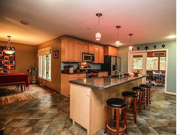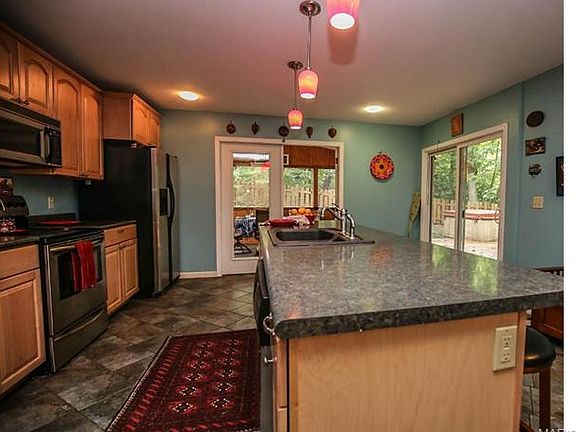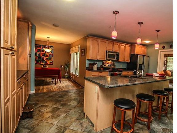 Great family home in kid-friendly neighborhood, light and bright, on three generous living levels. 3 bedrooms upstairs, 3 baths, 2 full masonry fireplaces, large kitchen, custom maple cabinetry, screened porch and deck with hot tub, fenced yard backs to woods. Efficient heating and cooling system new in June of 2015. Well insulated, newer roof. Hardwood floors throughout, ceramic tile in kitchen and screened porch. Anderson casement windows throughout. Built-in floor to ceiling book cases in living room, big windows for enjoying the view, newly painted. Kitchen remodel in 2009,flows to deck and screened porch, always nice light and plenty of room for entertaining. Dining room is right off the kitchen and opens to well-lit living room. 1 bedroom has two full closets, Master bedroom has big windows overlooking wooded lot, and newly remodeled master bath. The basement family room laminate flooring. Storage rooms in garage and basement. Separate laundry room. Oversized 2 car garage. Everything your family needs! Enjoy living in the country, while only minutes from town. Large, shaded lot provides privacy and great bird and wildlife activity.