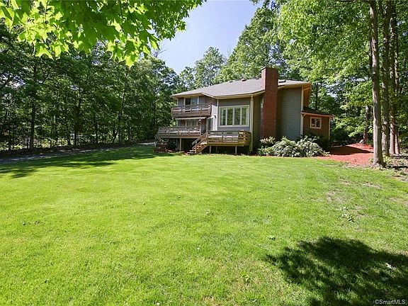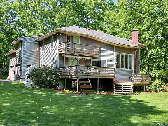 Custom contemporary style home with 2 car attached garage plus detached two story 3 car garage with workshop - Private Retreat on 1.07 acres! 5 TOTAL GARAGES! Open foyer to the two story great room with open balcony, wet bar, woodstove and sliders to the 2 tier deck with motorized Sun-setter awning overlooking the picturesque LEVEL yard! Great room opens to the eat in kitchen with tile backsplash; also on main floor is formal dining room, main floor office and full bath. Open balcony on second floor to the expansive master bedroom suite with French door entry and sliders to Juliette balcony as well as two walk-in closets, full bath w/skylight, whirlpool tub and double sink vanity, shower, sitting room and extra storage area. Two additional bedrooms on this floor plus laundry. New hydro air furnace, new well pump, new roof on house and outbuildings. Two story outbuilding with 3 car garage, possible poolhouse/cabana with upper level with large deck and sliders to kitchenette/entertaining area with cabinets, counters, sink and undercounter refrigerator. Lower level is heated, walkout workshop 24x26. Hobbyist, car enthusiasts take note! Builders own home.