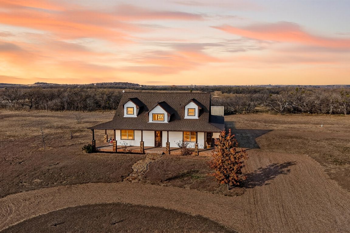Experience refined Texas country living in this custom 3-bedroom, 2.5-bath home situated on just over 10 fully fenced acres, located outside the city limits of Graham, Texas. Thoughtfully designed with quality craftsmanship and rustic elegance, this property offers space, privacy, and functionality in a peaceful rural setting. The exterior showcases a wraparound ...