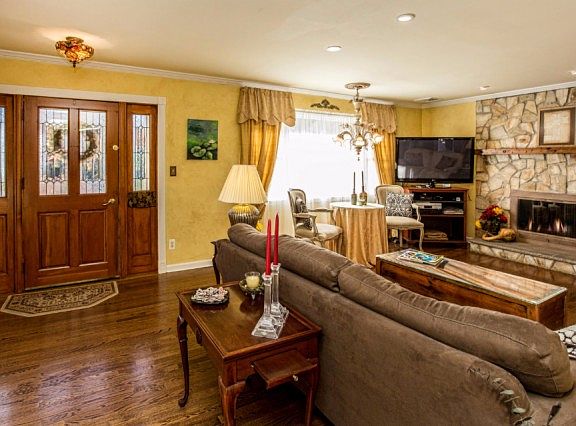 Updated and expanded 4 bedroom ranch with great curb appeal, circular driveway, front porch and maintenance free stone and vinyl exterior. Bright and open floor plan features living room with fireplace, family room, dining room, eat-in kitchen with large island, stainless steel appliances, separate eating area and glass sliding doors to deck. Master Suite with large walk in closet, updated bathroom with double sink, jacuzzi and skylight. Second bedroom and beautiful updated full bath and laundry complete the first floor living space. The second floors offers two good-size bedrooms and full bath. Large basement with recreation room and lots of storage, a three car garage, expansive deck with gazebo overlooking deep and private property, top-rated Park Ridge schools and convenience to New York transportation make this a great value!