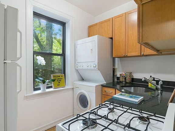Welcome to 160 Lincoln Place apt 2B. This South-facing gem of an apartment is located in a boutique building in North Park Slope, one of Brooklyn's most coveted locales. One flight up and you're in a pin drop quiet urban oasis with beautiful hardwood parquet floors, cozy foyer, lovely living space, and treetop views. Your open, windowed kitchen is well appointed with granite countertops and plentiful cabinetry. And you get to enjoy the ultimate Brooklyn luxury - your very own, in-unit Washer/Dryer. The kitchen has a window to the living space so you can entertain with ease. Your lovely Queen-sized bedroom is the perfect retreat after a long day, facing South and overlooking serene gardens. This Pre-War pet friendly boutique coop offers free laundry, dedicated storage, and super LOW monthlies. The location is simply unbeatable- in the very heart of Historic Park Slope, a block from Grand Army Plaza and Prospect Park, Brooklyn Museum, Brooklyn Library, and a whole plethora of restaurants and shopping. Subway access is incredible- you're equidistant to the B, Q trains at 7th avenue stop which take you to Downtown Manhattan in 10 minutes, and the 2,3 which also get you to the city in a manner of minutes.