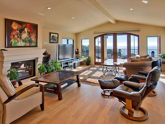 Gorgeous Mediterranean Estate with White Water Ocean View Built in 2011. Quick stroll to beach. High quality design beautifully detailed. Spacious gourmet kitchen opens to the great room with dramatic high ceilings, fireplace and lg. windows to enjoy views of Monterey Bay. Master suite w/frpl, BA w/jetted tub. Hardwood, Travertine floors,radiant heat,exquisite lighting,outdoor patio with Jacuzzi.