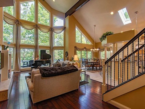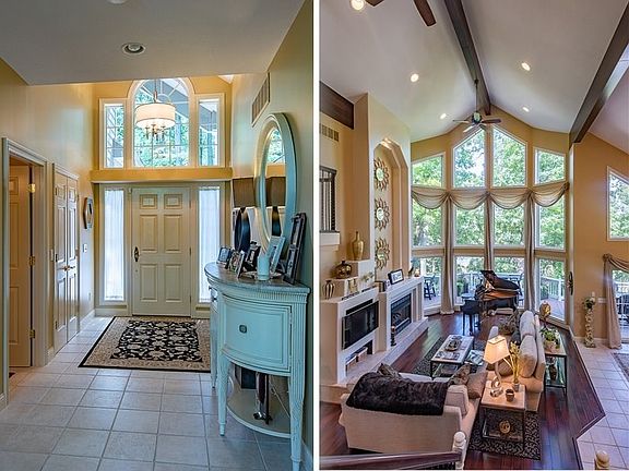 - AMENITIES: Ceiling Fan(s), Porch Covered, Main Floor Laundry, Breakfast Bar, Deck Open, Garage Door Opener, Jet Tub, Irrigation System, Wet Bar, Formal Dining Room, Main Level Bedroom Suite, Ceilings-Vaulted, Closet(s) Walk-in, Disposal, Landscaped, Twin Sink Vanity, Ceiling-9+, Six Panel Doors, Alarm System-Security, Countertops-Solid Surf, Tub/Shower Combination, Skylight(s), Tub and Separate Shower, Patio Covered, Stand Up Shower, Utility Sink, Countertops-Stone, Kitchen Island, Great Room, Balcony, Ceiling-Tray, Built-In Home Theatre, Open Floor Plan, Foyer Entry, Firepit, Custom Cabinetry