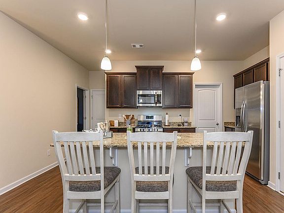 - Kitchen Features: Breakfast Bar, Eat-in Kitchen, View to Family Room, Stone Counters, Kitchen Island, Pantry Walk-In, Cabinets White