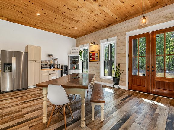 Welcome to this stunning, custom-built luxury farmhouse, where timeless design meets modern homestead living. Nestled on 8.16 acres, this 2,800 sq ft home includes 3 bedrooms, 2.25 baths, and a versatile bonus room that can serve as a fourth bedroom, office, or guest retreat. More than a home, it's an opportunity to create a self-sustaining lifestyle with all the comforts of modern luxury. Inside, you'll find an open-concept layout warmed by radiant heat throughout the home and garage. The chef's kitchen features a custom range, butcher block counters, a custom built island, and other luxury finishes. A laundry room adds convenience, while the primary suite provides a private retreat with a spa-like bath, including custom milled cherry vanities, and two walk-in closets. Energy efficiency is at the heart of this home. Built with insulated wall panels and a thermal slab, it features a high efficiency boiler and water heater, and a woodstove with a circulation system that warms the primary suite and bonus room. With the opportunity to connect and repair the outdoor wood furnace, and add solar in the future, this property could become nearly self-sustaining. The welcoming front porch with rustic beams and stamped concrete designed to look like barn boards sets the tone, while the expansive covered back porch and patio—crafted with the same finish—create a one-of-a-kind entertaining space with access to the above-ground pool. The property is fully set up for homesteading with a custom-built farmstand, vegetable gardens, fertile soil ready for expansion, and a 1,920 sq ft barn pre-plumbed for radiant heat—ideal for farming needs or workshop use. A pond provides year-round enjoyment, from peaceful summer evenings to winter ice skating, and a loop trail winds through the woods—perfect for walks or snowshoeing. This isn't just a home—it's an opportunity to cultivate a self-sustaining lifestyle, embrace the outdoors, and enjoy modern luxury in a private country setting.
