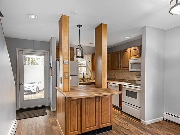 A wonderful end unit townhome in popular Lyman Meadows HOA. This one bedroom unit features a large master bedroom with two extra wide closets and a third larger walk in closet for extra space or home office area! A large full bathroom features a washer and dryer that are included in the rental. The open first floor has a butcher block kitchen island for meal prep with room for bar stools or chairs plus there is extra storage cabinets below the island. The step down living room walks out to a private back deck that has two storage closets. One holds a newer wall hung on demand combo furnace for heat and hot water. It's natural gas and very efficient for heating. The other closet can be used for winter tires and more storage space! Back inside there is also a large closet built under the stairs going to the second floor. There are 2 parking spots, one is assigned out front. This unit is conveniently located in the heart of Hinesburg with sidewalks to most of downtowns amenities including popular Papa Nick's for creemees and take out along with being across the street from Hinesburg Community School. These units are also tucked up behind Lantman's Market for grocery shopping. A short drive back into Williston and Burlington too. Min. 1 year or more. Renter is responsible for Gas, Elec and Water bill. Trash, snow removal and lawn care included by HOA.