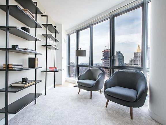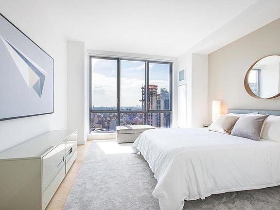 This showstopping over sized corner 1 bed/1.5 bath home featuring triple southern exposure with floor-to-ceiling windows awaits! Incredible King sized bedroom and closet space, a pass through kitchen, and separate dining area make this home perfect for entertaining your guests. A powder room with washer/dryer sits conveniently off your main room. See sunrises from your bedroom and sunsets from your living room! See the entirety of Manhattan from East to West! Photos are from a model representative of this layout. Views are very similar but not exact from the staged photos. One Sixty Madison, is a newly developed luxury residential tower located in the heart of NoMad, at the nexus of Chelsea, Gramercy and Midtown. Our building offers a fantastic sense of community, with curated events and elevated experiences with our full time lifestyle director and sommelier on site. With full access to all transportation hubs. This unique octagon design offers the best in layouts and finishes with great light and air . All residences have 9 3 " floor to ceiling windows, washer/dryer ,solar and black out shades . Kitchens are complete with polished Silestone countertops and backsplash, modern bright white custom cabinets, a stainless steel Blomberg refrigerator and Kitchen-Aid Slide in range, dishwasher and microwave. Bathrooms feature a custom walnut vanity, Daltile porcelain tile and unique recessed shower curtain tracks. Select residences also feature a glass enclosed shower. Bosch washers and dryers are offered in all residences throughout the building. Residences are infused with natural light through floor-to-ceiling windows, while gracious layouts and thoughtful touches emphasize the attention to detail. Layouts offer remarkably furnishable and spacious residences, with many able to accommodate dining tables for up to 6-8 people. All residences also feature 9 3 ceiling heights that are accented by White Oak finished floors.