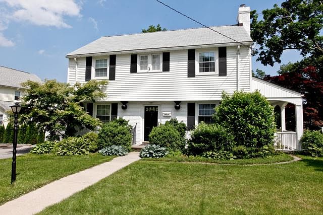 Bright immaculate Colonial with level yard. Entry hall leading to large living room with brick fireplace and door to private porch formal dining room powder room kitchen with doors to garage and yard. Upstairs to master bedroom with dressing area and updated bath 2 additional bedrooms and updated hall bath. Lower level with large family room and laundry. New windows heating system water heater a/c compressor and Sani-dry air purifier and dehumidifier.