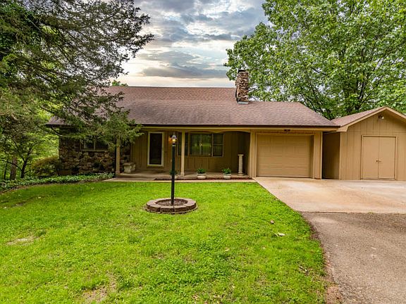 From the moment you pull on to this hidden drive you feel the quiet and serenity of this home just minutes from Branson and three major lakes. Step up on the inviting covered porch that greets your guests as they enter to a cozy living room with rock fireplace and wood floors.The main level is designed for entertaining with spacious kitchen with granite counters and oversized dining area that steps out to the back deck perfect for bar-b-ques and watching the wildlife and seasonal views of Lake TaneyCoMo. Master bedroom complete with en-suite and second bedroom round out the main level. Upstairs find Jack and Jill bedrooms and a shared hallway bath. Downstairs is perfect for all ages with space for an over-sized family room, movie room, library or study that looks out into the backyard
