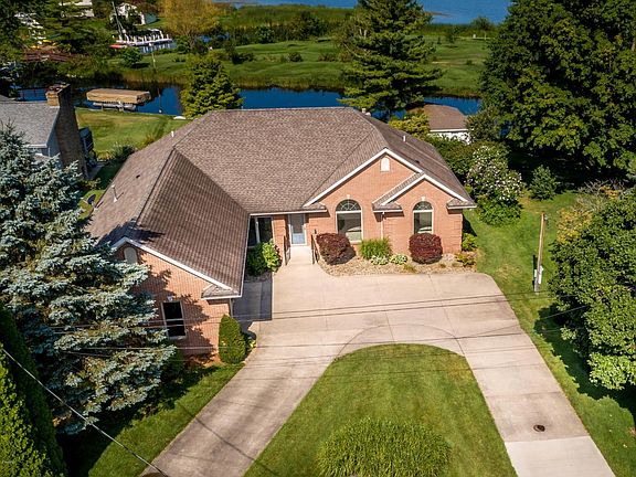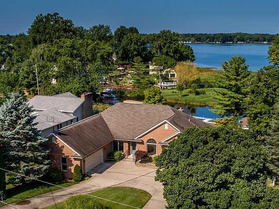 LAKE OF THE WOODS Work or Play. Village amenities with this lake home. Custom Brick Ranch with Walkout level. Open floor plan for the main floor living area, built in entertainment/wet-bar and fireplace and French Doors to lakeside deck. Formal Dining and Living room. Master en suite with French Door to lake side deck. Two additional bedrooms, one with a Murphy bed and office area. Main floor laundry/half bath. The main level has New carpet throughout. The walk out level is finished with a rec room and built in counter/cabinets for entertaining. The lower level also has work shop and storage areas. Oversized 2 car attached garage with heater. Heated no step entrance. So many extras and attention to detail. Ready for immediate occupancy!